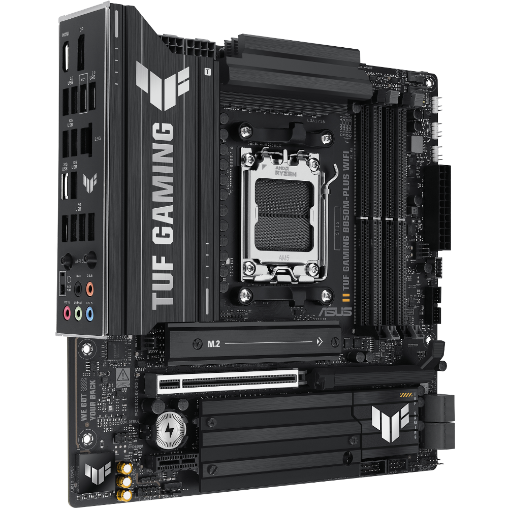 Designed for gaming and productivity, the TUF Gaming B850M-Plus combines future-ready specs with a rugged build, making it ideal for long-lasting, high-performance AMD desktop systems.