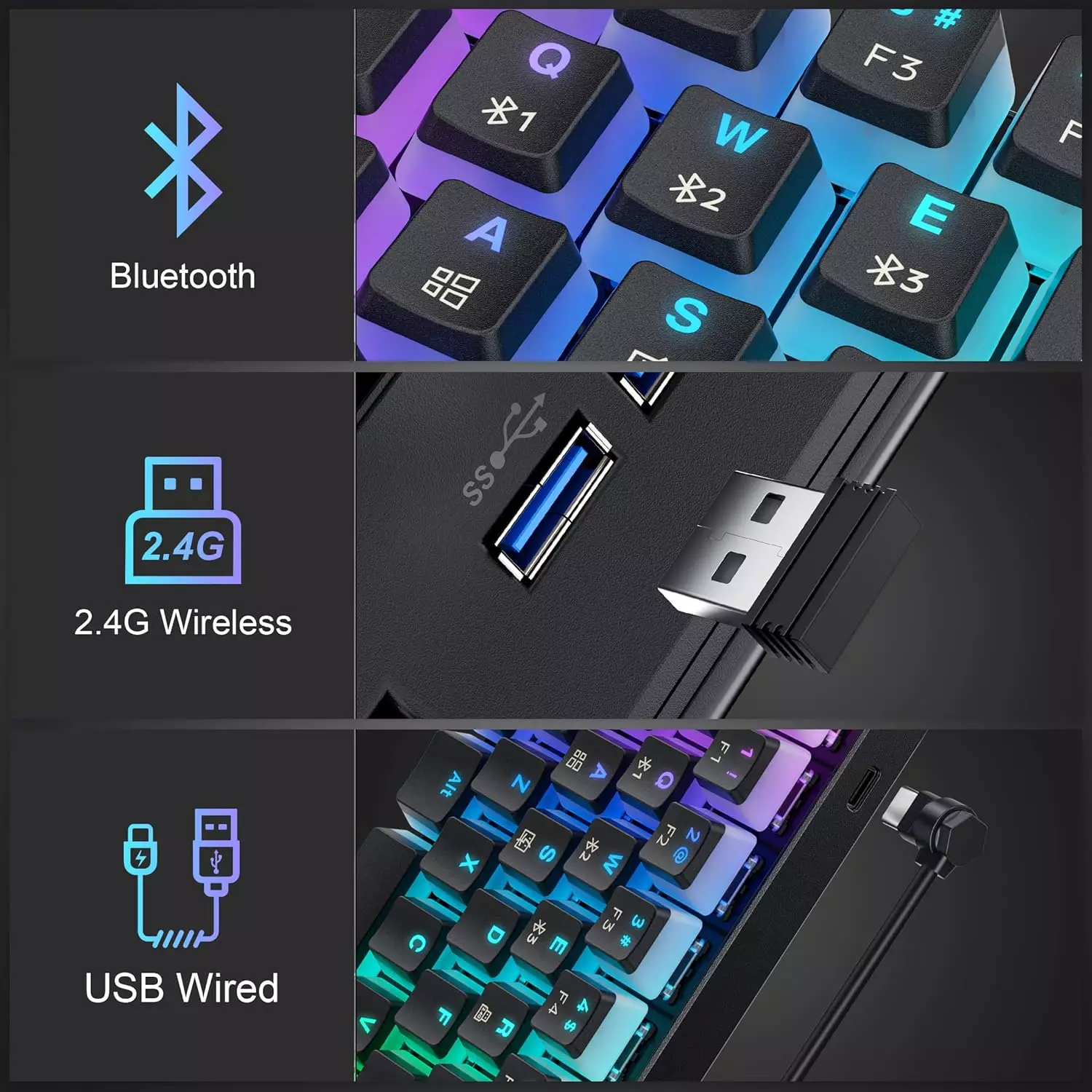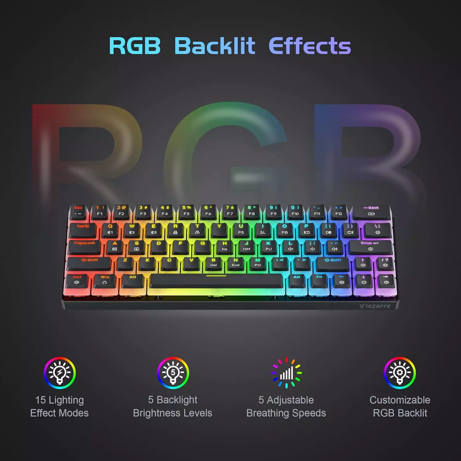 Tezarre TK63 Wireless Keyboard Bluetooth/2.4G/USB Wired 60% Mechanical Gaming Keyboard RGB Backlit PBT Pudding Keycaps Hot-Swappable