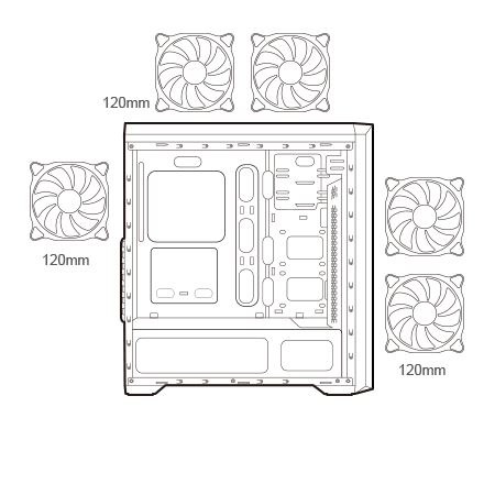 Want to cool all those powerful components? No problem. You can install up to five fans and a 240mm water cooling radiator to protect your investment from the threat of overheating.
