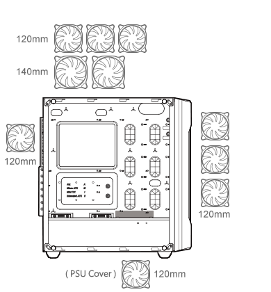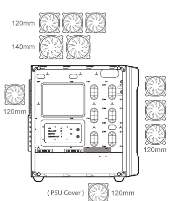 | PSU Cover | 120mm x 1 (for HDD Cooling) | |