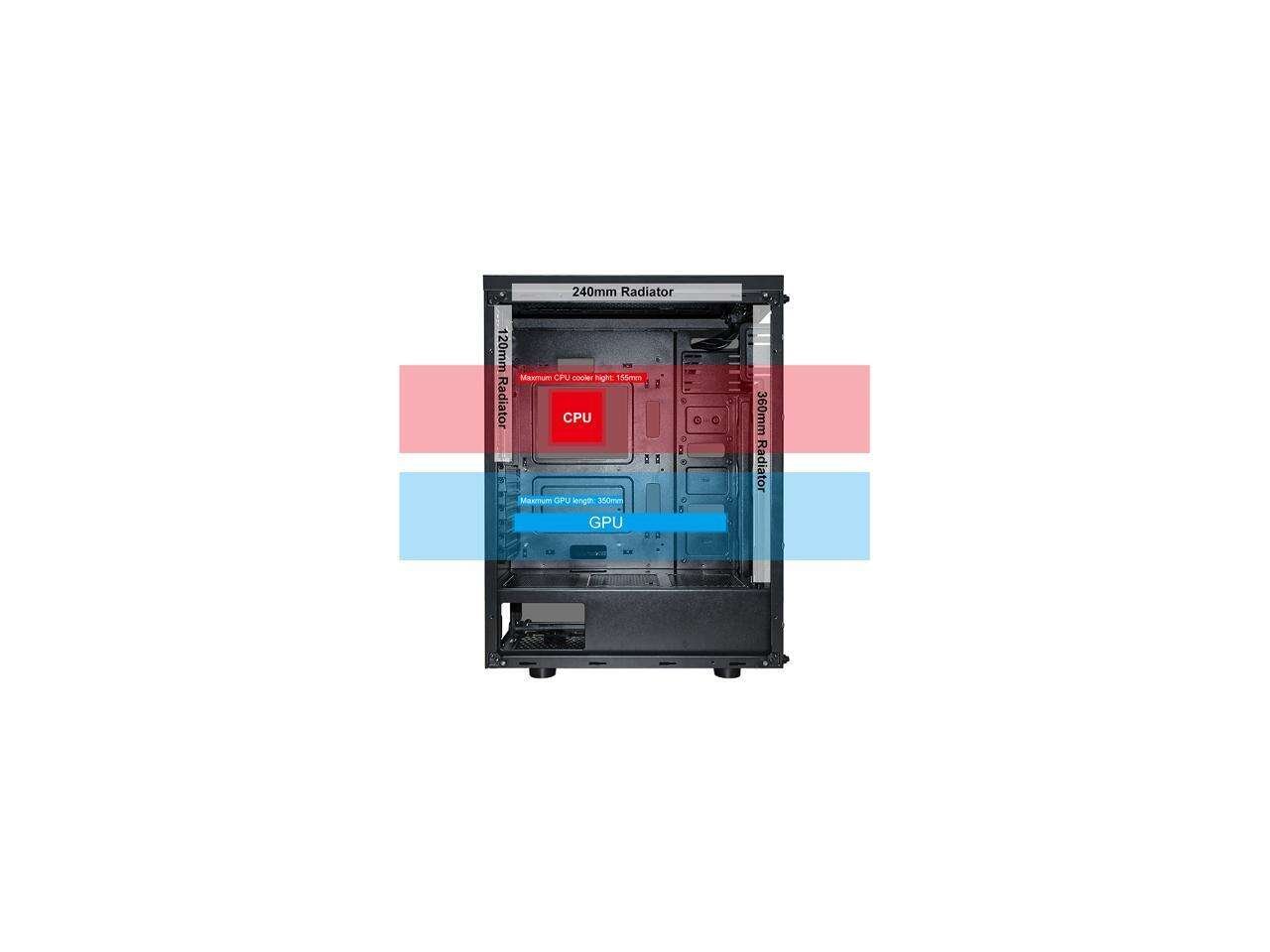 - Extreme Roomy Internal Space: Room for up to a 280mm radiator in front, 120mm radiator in the rear. 3 Sided Tempered Glass. Gamers are allowed to install upto to 174mm High CPU Cooler and up to 375 mm Long graphic card Installation